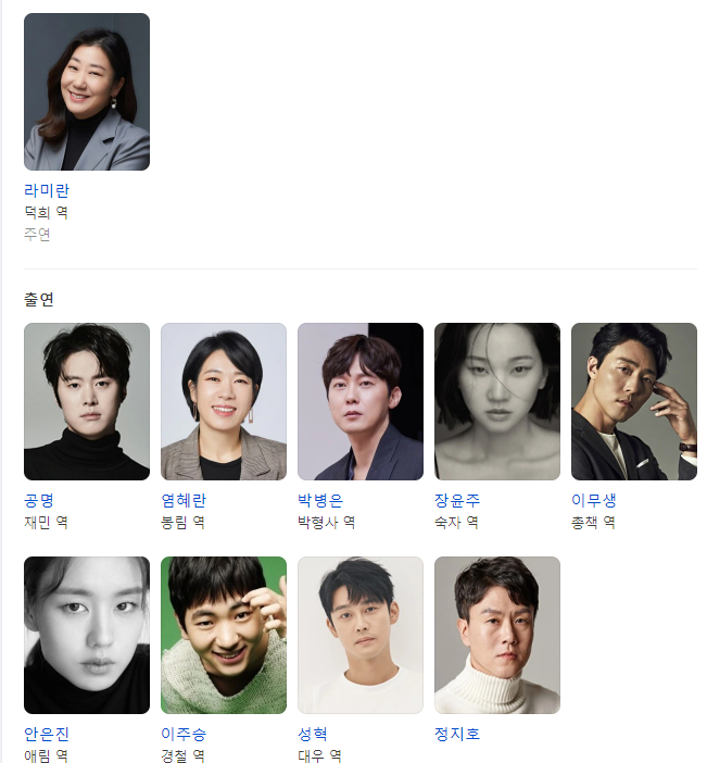 출연 : 주인공 라미란과 염혜란, 공명, 박병은과 장윤주, 이무생과 안은진