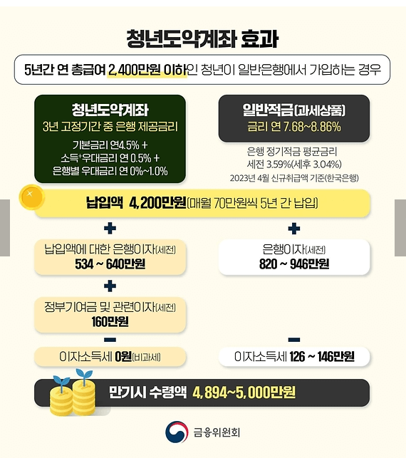 - 만기 시 정부기여금 지원, 이자소득 비과세 혜택을 받음