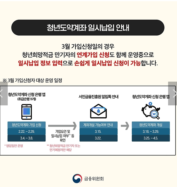 청년도약계좌의 3월 가입 신청기간을 알려드립니다. 늦지 않도록 잘 살펴보시기 바랍니다.